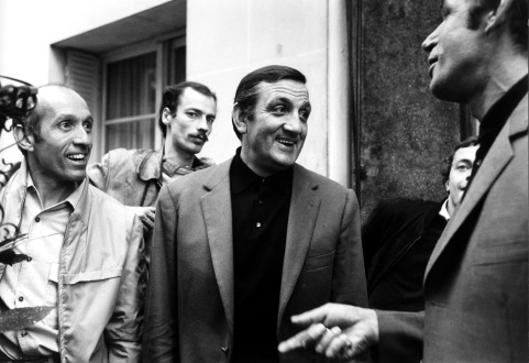 Lino Ventura et Michel Constantin blaguant sur le tournage de