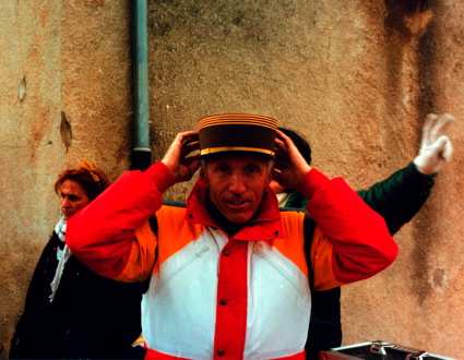 Portant le képi du personnage interprété par André Dussolier sur le tournage de